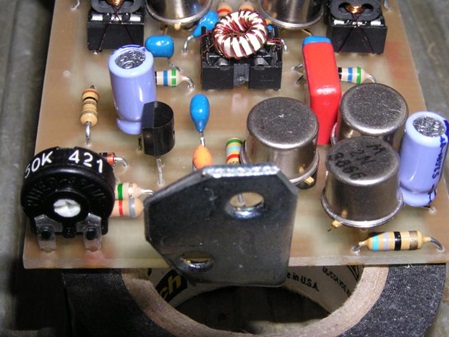 Sehr wichtig ist die Kontaktierung zwischen dieser Stahlfeder und der Kontaktfläche. Die Feder darf nicht verbogen sein, muss völlig blank sein. Weiterhin muss die Feder justiert werden damit beim zusammenschieben der Elektronik in das Gehäuse ein gewisser Druck entsteht, die Feder also richtig gegen die Platte ( Winkel ) gedrückt wird.
