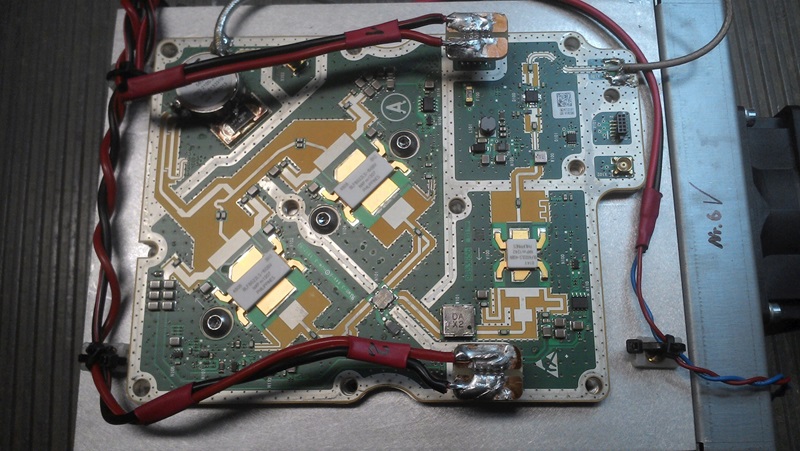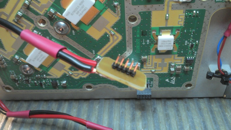 Jeweils vier Pin's sind parallel geschaltet für die Versorgung der beiden Endstufen Transistoren. Am Pin 1 ( linke Leiste ) wird die Versorgungsspannung für den +5Volt Wandler des Vortreiber angeschlossen, am Pin 1 ( rechte Leiste ) die Spannung für den Treiber Transistor.